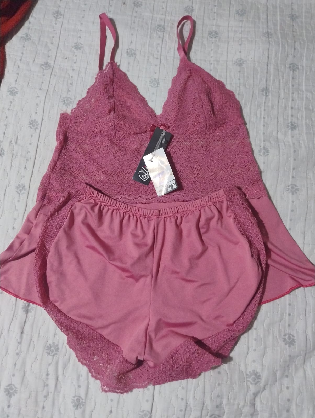 Detalhe em renda na barra das pernas, combinando com a parte superior e trazendo harmonia ao visual.